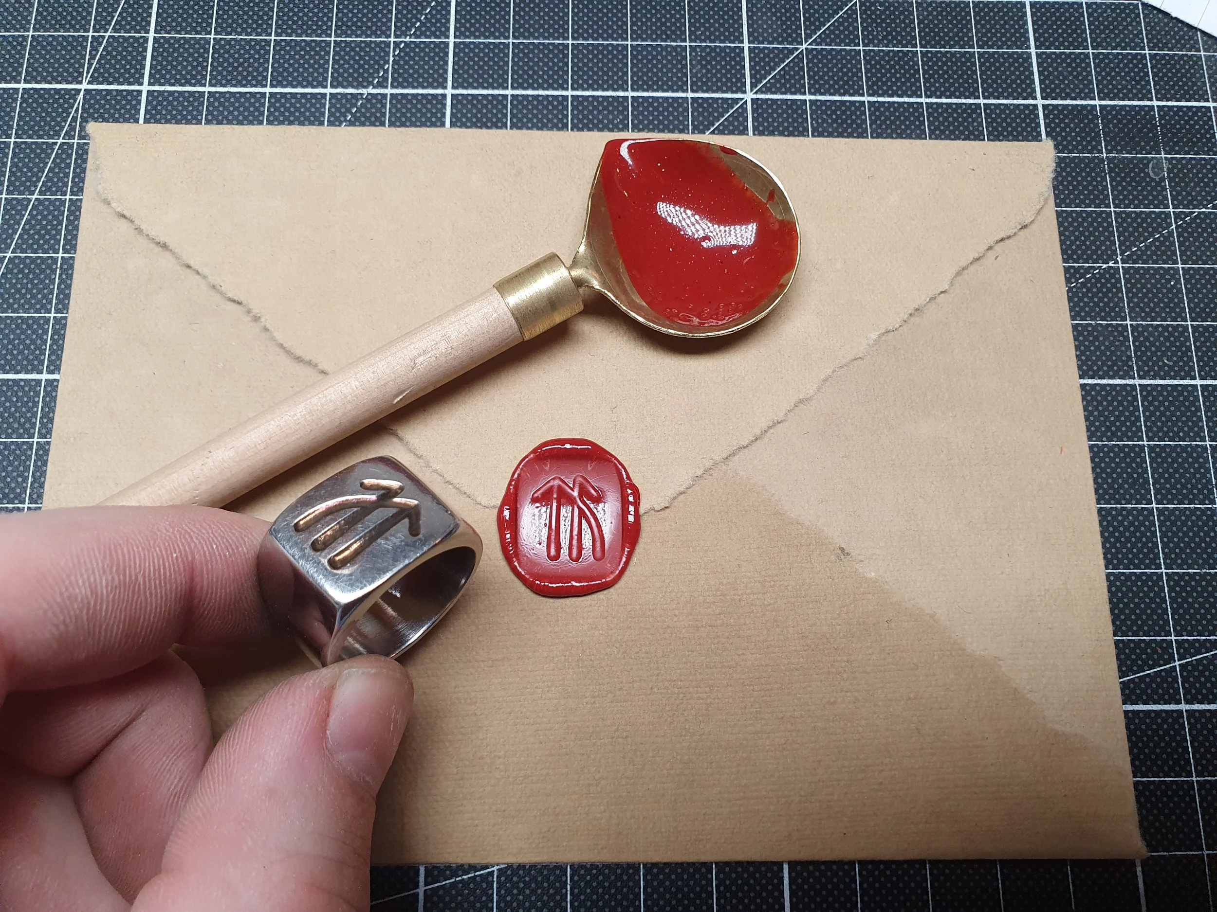 My sigil ring. I made it from a stainless nut and engraved my makers mark on it so that it can actually be used for its purpose. I also threw together the wax scoop for making neater seals.