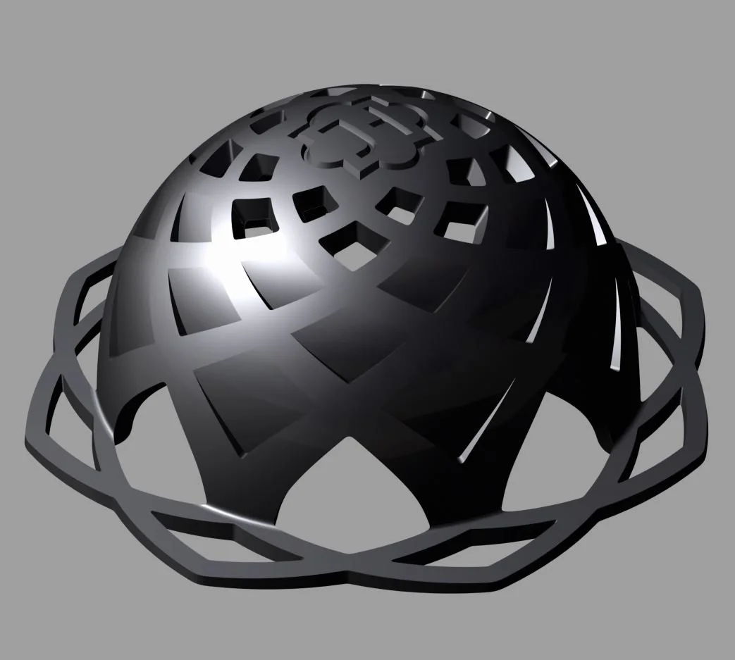 "Zills" miniature hand cymbals usually used in dance performances. Modelled this for a friend. It's always good fun to model something that has a semi organic feel to it. They were later printed, then cast in brass. Because of casting I did my best to give it generous draft angles.